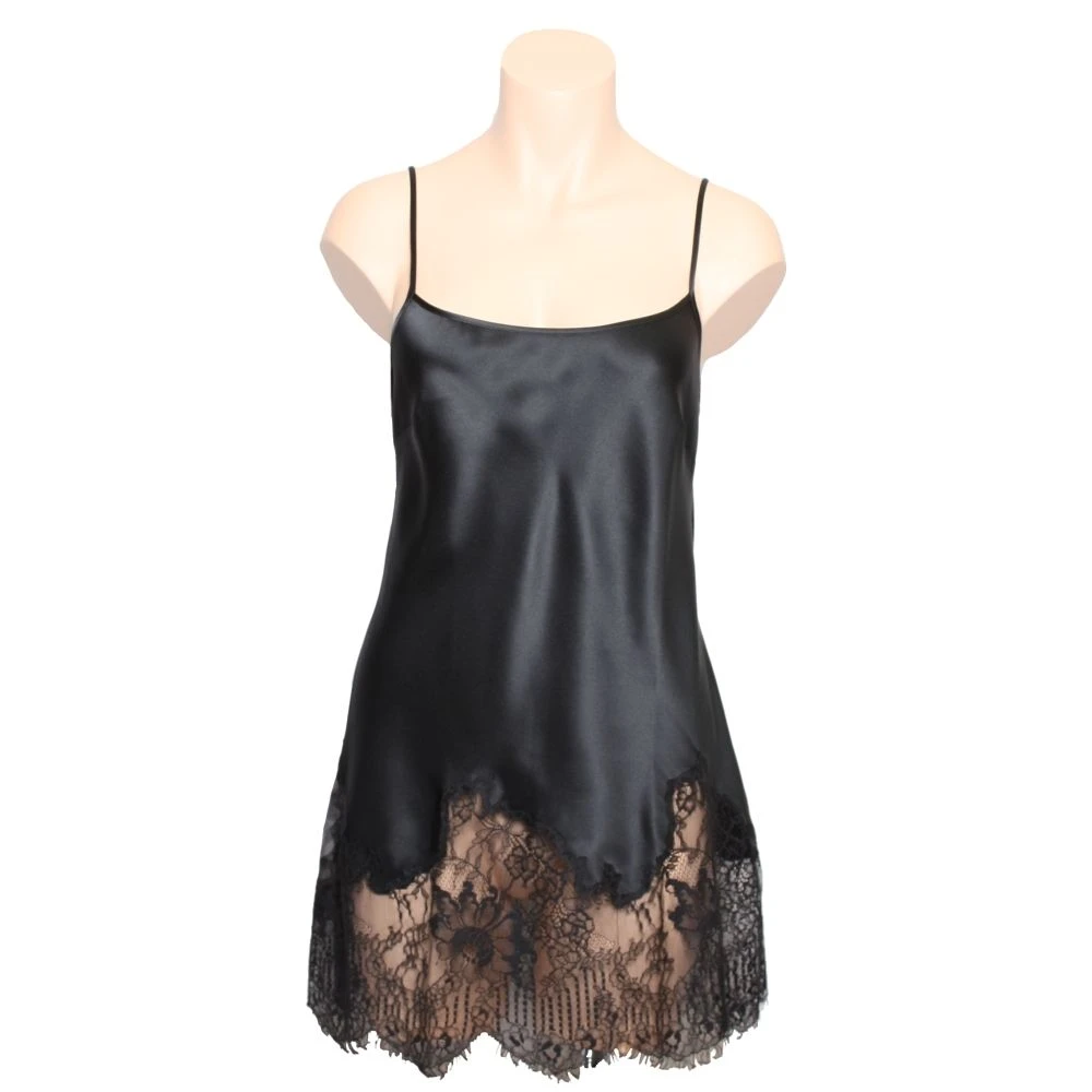 Die Mini Combinettes von Marjolaine sind mit nur 75 bis 80 cm Länge entweder sehr kurze Nachthemden oder länger geschnittene Tops. Je nach Lust und Laune kann man diese verführerische Seidenwäsche als Nachthemdchen tragen oder für „tagsüber“ als Oberbekleidung zu Hosen kombinieren. Raffiniert für Kombilooks ist bei diesen Teilen, dass der breite Spitzensaum unter darüber getragenen Pullovern oder Jäckchen hervorschaut…