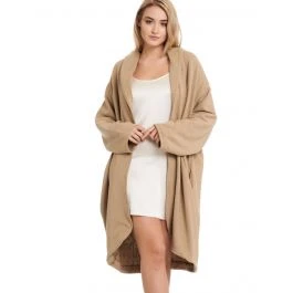 Diese Oversized Jacke ist eine wunderbare Lounge-Wear in der kalten Jahreszeit oder die perfekte Ergänzung zu Nachtwäsche, für alle die leicht frieren. Die Länge ist ca. 95 cm und die Jacke hat seitliche Taschen.