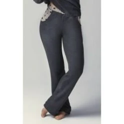 Diese gemütliche lange Hose besteht aus einem kuschelweichem Material – einem fließend fallenden Feinstrick aus Baumwollmischung. Diese angerauhte Materialmischung mit 70% Baumwollanteil ist weich, schmeichelnd und sehr hautsympathisch. Die Hose ist somit ein perfektes Lounge-Wear Teil oder als Ergänzung zu Nachtwäsche geeignet.