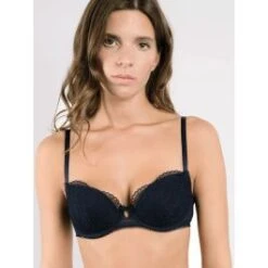 Der Balconette BH Whisper ist eine luxuriöse Lingerie der französischen Edel-Dessous Marke Maisonlejaby. Der BH hat Halbschalen-Cups in typischer Balconette Form. Die Cups mit Bügel sind aus einer leicht wattierten Schale gefertigt und mit bestickter Tüll-Spitze überzogen.