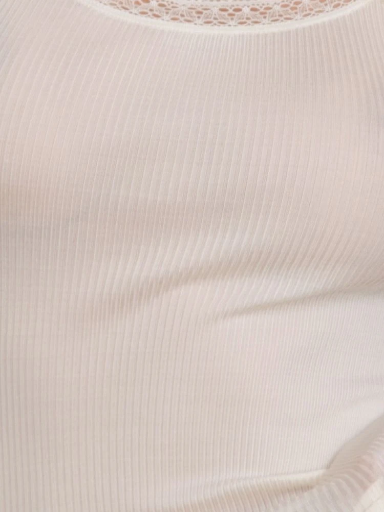 Das Camisole Unterhemd Wolle-Seide besteht aus einem besonders hochwertigen gerippten Jersey aus 70% extrafeiner Merinowolle und 30% Seide in Kombination mit echter französischer Spitze von Caudry aus Calais. Dieses edle Träger-Top hat keine Ärmel und eine Gesamtlänge von ca. 60 cm. Der Halsausschnitt ist mit der edlen Spitze eingefasst, der untere Saum ist wellig umkettelt.