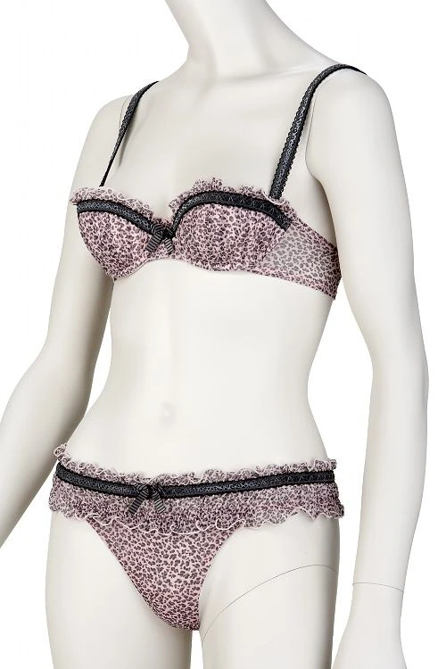 Das Decolleté ziert ein kleines Schleifchen und die Cups sind in Falten gelegtem Tüll belegt. Dieser hochwertig verarbeitete Schalen-BH von Chantal Thomass ist in unschuldigem weiß oder in einem zauberhaften rosa Leopard-Print erhältlich. Es werden die folgenden Größen mit B- oder C-Cup angeboten.
