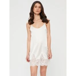 Das Neglige mit verstellbaren Trägern von Chiara Fiorini besteht aus Seide in einer elastisch gewebten Qualität (96% Seide, 4% Elasthan). Es ist Made in Italy und in den Größen 34 bis 52 erhältlich. Dieses Neglige ist ca. 85 cm lang. Der untere Saum ist mit einem breiten Spitzen-Abschluss gestaltet und die feinen Spaghetti-Träger sind in der Länge verstellbar.
