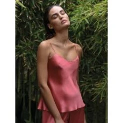 Dieses edle Seiden-Top macht als glänzendes Oberteil oder als seidiges Unterhemd eine gute Figur. Zusammen mit den separat erhältlichen Seidenshorts wird daraus ein luftiger Kurz-Schlafanzug für den Sommer. Das Top ist aus Seidensatin aus reiner Seide und hat eine Länge von ca. 65 cm. Die zierlichen Spaghetti-Träger sind besonders fein verarbeitet und der V-Ausschnitt betont das Decolleté.
