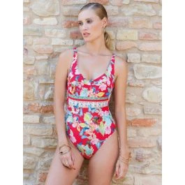 Träger Badeanzug Papillon No. 8 rot-bunt von Chiara Fiorini